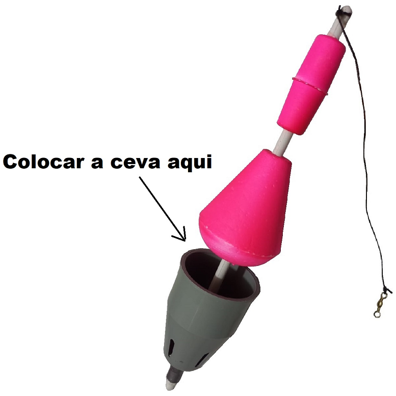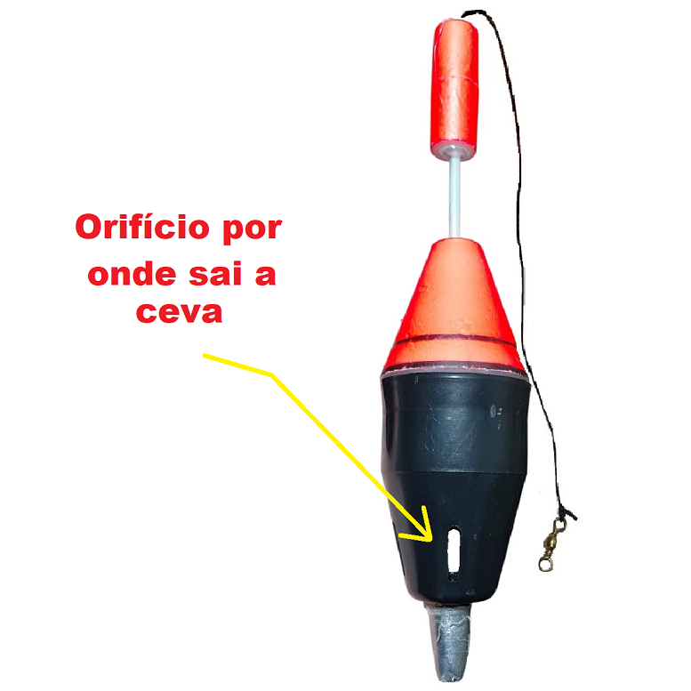 Obs: Embaixo da boia cevadeira tem cinco orifícios onde a ceva vai sendo liberada aos poucos conforme vai dissolvendo na água